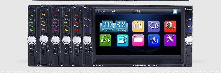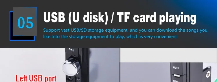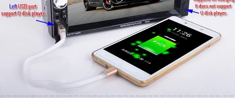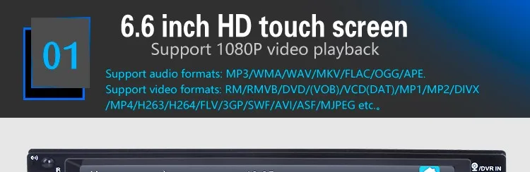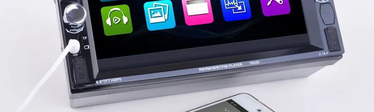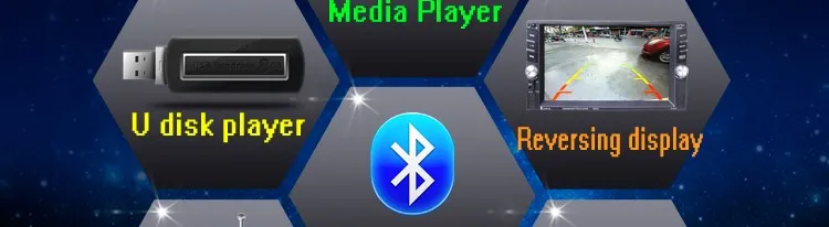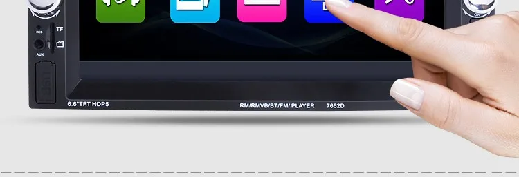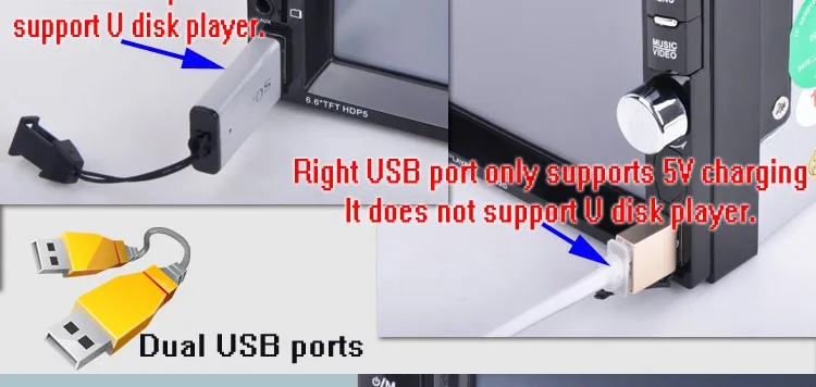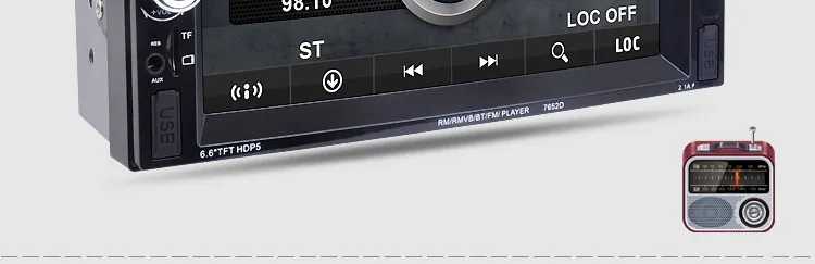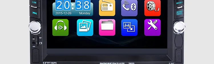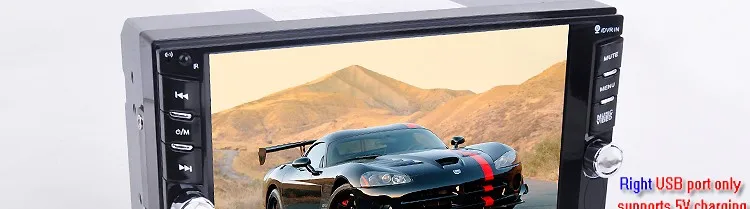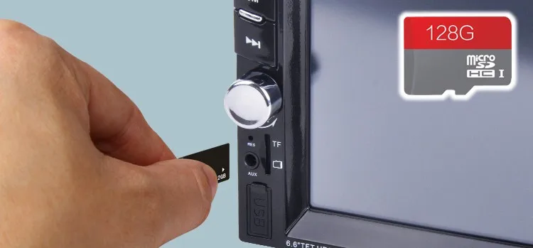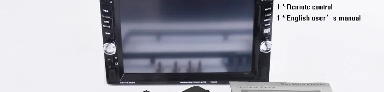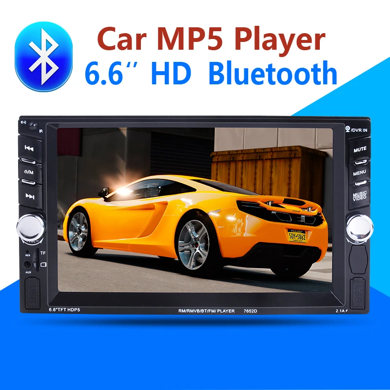 2 Din 6.6'' HD Car Multimedia Player Bluetooth Stereo Radio FM MP3 MP5 Video Audio Steering Wheel Remote Control Remote Control General Features: - 6.6 inch digital TFT Touch Screen - Dual USB ports, Left USB port support U disk player. Right USB port only supports 5V charging.It does not support U disk player. With TF Card Slot, With USB 2.0 port; - 1080P video Format Item Description : - Support the Audio playback format of MP3/WMA/WAV/MKV/FLAC/OGG/APE - Support the Video playback format of RM/RMVB/VOB/DAT/MP1/MP2/DIVX/XVID/MP4/H263/H264/FLV/3GP/SWF/AVI/ASF/MJPEG ect - MOSFET amplifier: 45 watts x 4 Max power output - FM Range:87.5MHz-108.00MHz (Europe), Stereo electronic tuner, scan & store stations automatically - With Remote Control - Power-off with auto-memory store function under radio or TF/USB mode - Clock Function - Mute Function - Bluetooth Function - Bass & Treble,L & R channel stabilizer - AUX IN Function - Rear View camera Function - Video input Function (FOR REAR VIEW CAMERA!) Panel size (mm) : 178(width)*100(height)*56(depth) Item Weight: 0.83 KG Kindly attention: This car radio do not BUILT IN and include any Memory card or SD card inside. There is not CD room for the CD Player. This is not Support CD/DVD Player. This is car radio MP5 player support the USB TF card. And its music quality is better than CD/DVD Player DON'T SUPPORT GPS!! INCLUDED: 1 * 6.6" HD Car MP5 player 1 * Remote Controller 1 * Power cable 1 * English User Manual