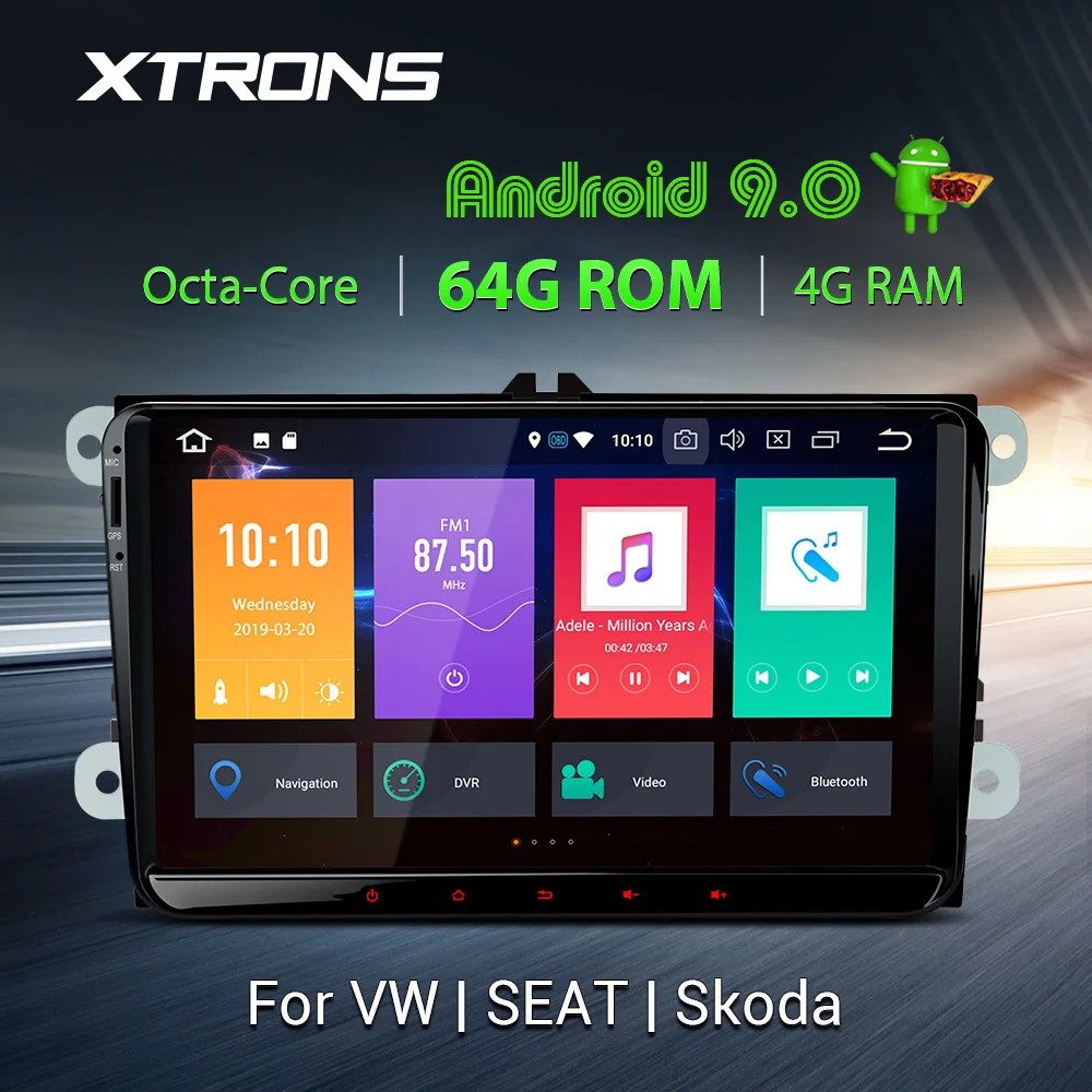 Android 9.0 Octa Core 4GB RAM + 64GB ROM 9'' Car Stereo Multimedia GPS System Custom Fit for Volkswagen | Seat | Skoda Android 9.0 | Octa Core | 64GB / 4GB | Car Auto Play | TPMS | OBD | 4G WiFi | DABNote: This unit does NOT have a DVD drive.*Android 9.0 Octa-Core Operating System with XTRONS UI*64G ROM + 4G RAM ,Faster performance*Support Car Auto Play*Supports OBD2 Function*Support 3G/4G/wifi (3G/4G dongle needed)*DAB+ Tuner Ready*Tire Pressure Monitoring is Available*1024*600 High resolution*Screen mirroring function*Dual channel canbus*High quality bluetooth voice call*Vibrant button colour schemes*XTRONS heat sink and Fakara Original Radio & GPS Socket*DVR & Camera INPUT Ready*Built in SD/USB*Built-in radio tuner*Support online and offline maps*Optional Accessories to perfect your user Experience •Applicable Models & YearsFor Volkswagen:For Amarok (2010-2015), Beetle (2011-2015), Bora (Jetta) (2005-2015),Caddy (2004-2015), EOS (2006-2015), Golf MK5 / V5 / A5 / 1K (Variant / GTI / Estate) (2003 - 2009), Golf MK6 / VI6 / A6 / 5K (GTI / Wagon / R / Variant / Estate / Cabriolet) (2008-2013), Golf Plus (2004-2013), Jetta V / A5 / 1K (2005-2009), Jetta Vl / A6 / 1B (2010-2015), Passat B6 / 3C (Estate / Sedan / Wagon) (2005-2010), Passat B7 / 3C(Estate / Sedan / Wagon / Alltrack) (2010-2014), Passat CC (2008-2011), Polo MK5 / 6R(GTI / Sedan)(2009-2014), Scirocco Mk3 (2008-2011), Magotan (2007-2013), Sharan (2010-2014), Touran (2003-2014),Tiguan (2007-2013), T5 Multivan (2010-2013), T5 Transporter (2010-2013), T5 Caravelle (2010-2015), Vento (2009-2015)For SKODA:For Fabia (2007-2014), Fabia Combi (2008-2014), Roomster (2006-2015), Octavia (2007-2012), Yeti (2009-2015), Superb (2008-2015)For SEAT:Alhambra (2010-2015), Altea (2004-2015), Altea XL (2007-2015), Leon Mk2 (2005-2012), Toledo (2004-2015)Face Panel: 220*210*130mm IMPORTANT NOTE: 1. Please check whether your VW T5 vehicles' center console can be fit with your car, if it is quadrate shape, then this unit can NOT fit with your car.2. Please check your SKODA vehicles' center console to see whether it can be fit with your car, if not, you may refer to XTRONS PF710TSS.3. Please check whether there is original reversing camera in your car, it there is, you need to order an extra video decoder box to retain your vehicles' original reversing camera function.4. This unit does NOT support your car's Dynaudio sound system.