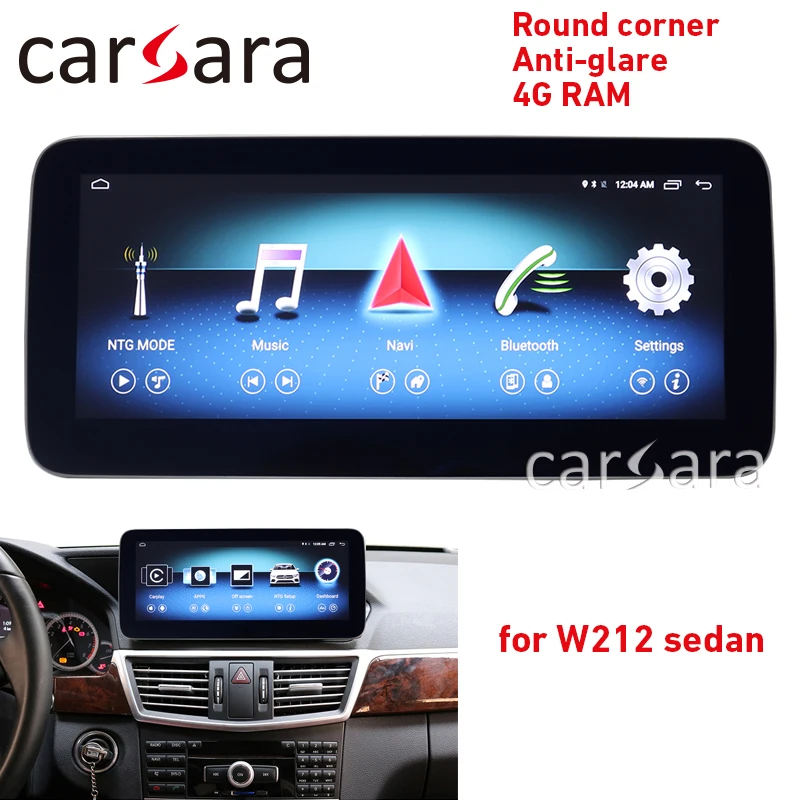 Android screen W212 Comand system upgrade touch display round corner head unit monitor anti-glare 10.25 GPS Navi E250 multimedia Compatible with Mercedes Benz E Class W212 2010-2015 sedan and wagon Choose the correct version according to your car model. If you are not sure, tell us your car model and send photo of car dashboard to check compatibility. Features Round corner HD resolution 1280*480 Anti-glare Latest UI style like origianl comand system NTG5.5 Octacore 4G RAM 64 ROM Plug and play, jack by jack connection without damage to car Preserve original system and functions Support car console joystick control Support car steering wheel buttons Support original reverse camera and aftermarket reverse camera video with reversing trajectory Support navigation software like Google map, Sygic, iGo, Waze, etc. Play 1080P video Play lossless audio Support screen mirror link with iPhone, Android phone by third party app easyconnection Support 4G network TD-LTE: B39 / B40 / B41; FDD-LTE: B1 / B3 / B7 / B8 in Asia-Pacific region(not support 3G/4G outsideAsia-Pacific region) Built-in Bluetooth, support BT hand free call, BT music Built-in Wi-Fi, support to share network to display by phone hotspot Specification CPU Octa core RAM Memory DDR3 4GB NAND FLASH eMMC 64GB Touch Screen 10.25 inch 5 Point Capacitive Touch Screen Resolution 1280*480 Start-up Time About 20S Operating System Android 8 Video Format AVI, MKV, MP4, MPEG, WMV, MOV, FLV,3GP Audio Format MP3, WKV, WAV, AAC, FLAC Image Format JPEG, BMP, PNG, GIF GPS Built-in MAP Support Google map, Sygic, iGO, Waze, etc. WIFI Built-in WIFI module 4G Network TD-LTE: B39 / B40 / B41; FDD-LTE: B1 / B3 / B7 / B8 (Support 4G in only Asia-Pacific region) Bluetooth Built-in Bluetooth module Slots 2 USB 2.0 port, 1 TF card slot, 1 sim card slot Working Tempertarure -40degC--+50degC Standby Current <8MA Working Voltage 10~16V OSD Language Danish, Dutch, English, Filipino, French, German, Greek, Hindi, Italian, Japanese, Korean, Polish, Portuguese, Russian, Serbian, Spanish, Swedish, Thai, Turkish, Vietnamese, etc. UI Style Package Content Package includes the Android navigation media player, mount braket, GPS atenna, Power cable, USB and LVDS cable, LVDS adapter box(only comes for W212 2010-2012). After Installation