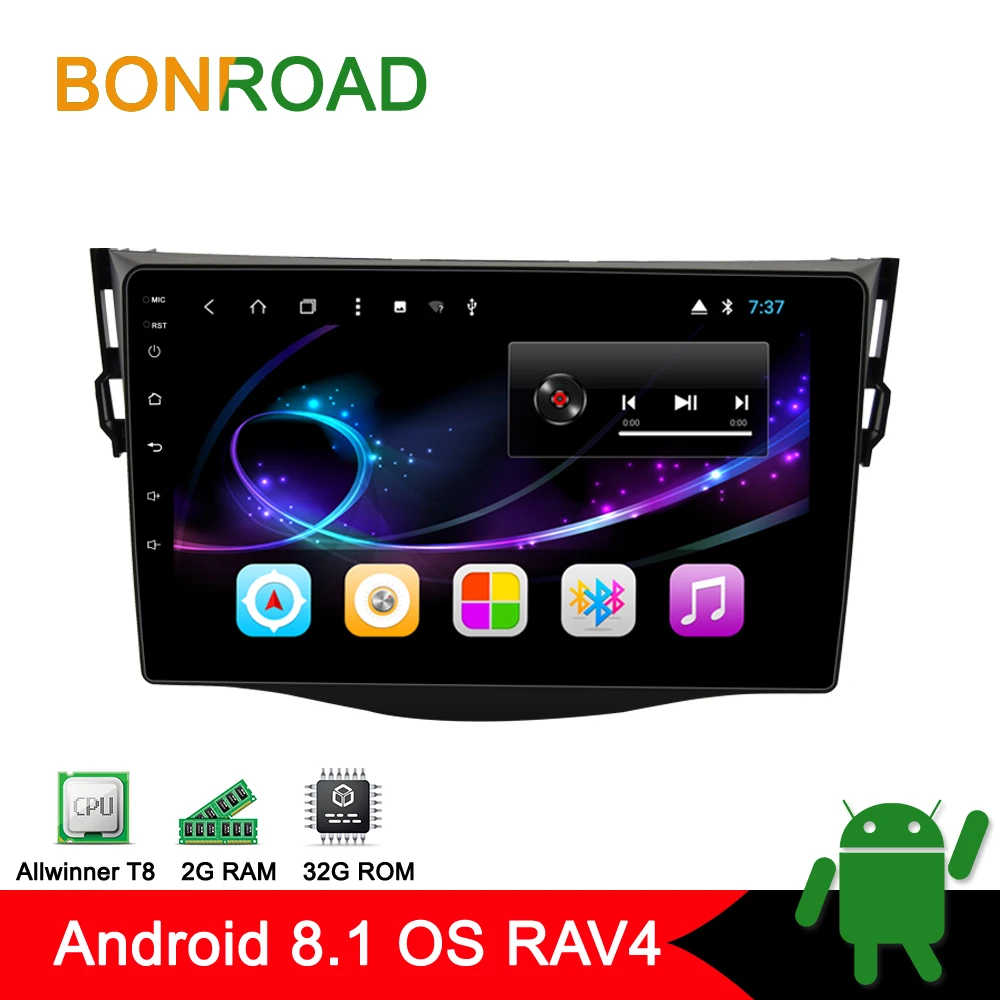 Bonroad 9" Android 8.1.0 2G RAM 32G ROM 8Core Car Multimedia Player Stereo For TOYOTA RAV4 Bluetooth/Radio/Audio /WIFI/3G/4G 1. OS: Android 8.1.0 OS System Capacitive Touch Screen 2.9 Inch IPStouch Screen,1024*600 Resolution 3.CPU: 1.8GHZ OctaCore 4. RAM:2GB 5.Nand Flash(Rom) :32GB 6.Built in WIFI(802.11b/g/n) 7.Video format :DVD/VCD/CD/MP3WMA/MPEG4/Divx/JPEG/1080p video format 8.FM/AM RADIO( RDS Included) about 30 present station 9. It is Pure Touch Screen without tf card slot ( Map installed into unit )