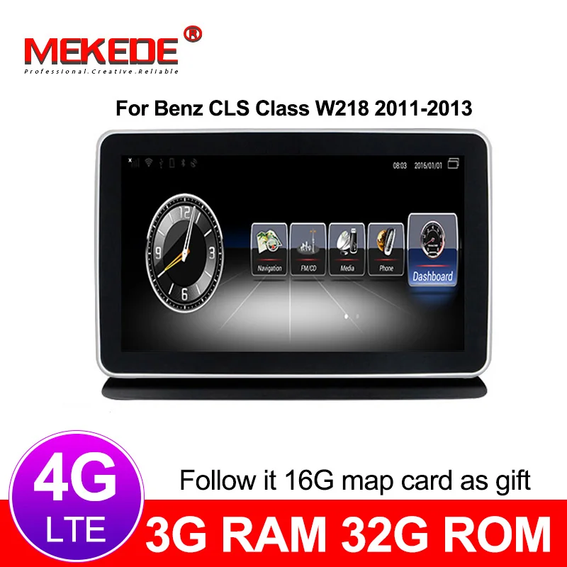 9" Android 7.1 3+32G 4G lte Car Radio GPS Navigation for Mercedes Benz CLS W218 2011-2013 with Bluetooth WiFi Head Unit Car multimediaplayer fit For: ForMercedes Benz CLS-Class W218: 2011-2012(Original Car with NTG 4.0) ForMercedes Benz CLS-Class W218: 2013(Original Car with NTG 4.5) Main Function System Android 7.1 CPU Quad core RAM 3 GB DDR3 ROM 32 GB 4G LTE Support 4G SIM Card WIFI Support Resolution HD 1280*6480 Capacitive Touch Screen GPS Built-in GPS,16G map card as a gaft,built-in Map Support DVR OBD2 DAB+ rear view camera Mirror screen for android &iphone Function function function Support original all functions,Support original car multimedia button,Support original rear view camera andreverse trajector,Support original Parking trajectory/Radar. Bluetooth Built-in Bluetooth and Support Original Bluetooth Installation Only one screen,no external Box, easy to install,plug and play. package Screen and all cable Selling Point: Factory radio screen update into Intelligence Car Multimedia System, only exchange your original car TFT monitor, keep all the factory functions, maintain your original Car Radio and Amplifier function. Only one screen,no external Box, easy to install,plug and play. Support original all functions :1. Be compatible with cars with/Without Optic fiber.2. Be compatible with cars with/Without Original Navigation function 3. Be compatible with cars with original screen 2.0/4.3/6.5/7.0/8.0/8.4 inch.4. Be compatible with factory Canbus , Steering Wheel Control, Door not closed Warnig,Car Info, etc. 6. Support Original Radio.7. Support factory joystick control.8. Support original Parking trajectory/Radar. 9. Built-in Bluetooth and Support Original Bluetooth.10. Support original rear view camera and reverse trajector.11. Only one screen,no external Box, easy to install,plug and play. Note: this is 10.25inch model for benz CLS class W218201-2013,if you like can go buy
