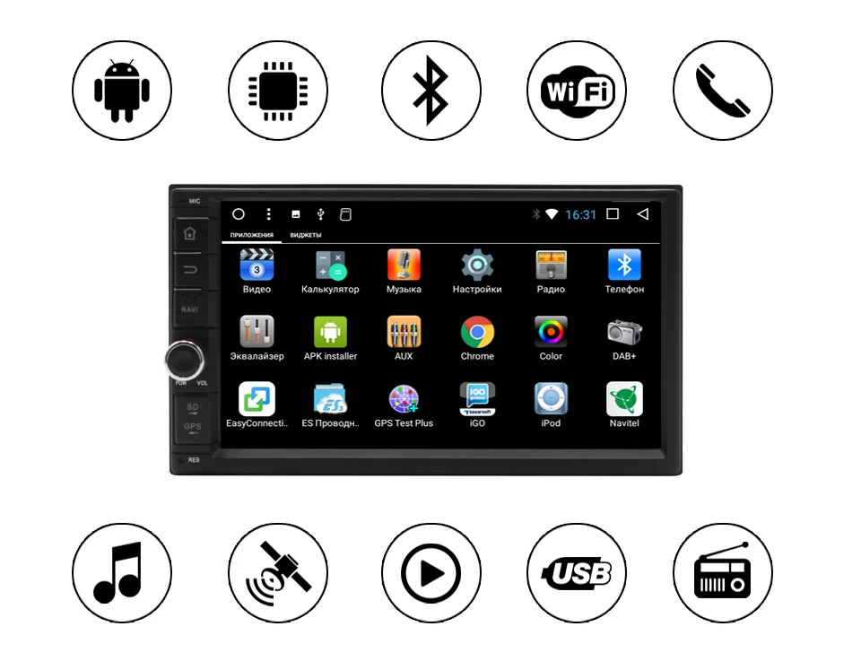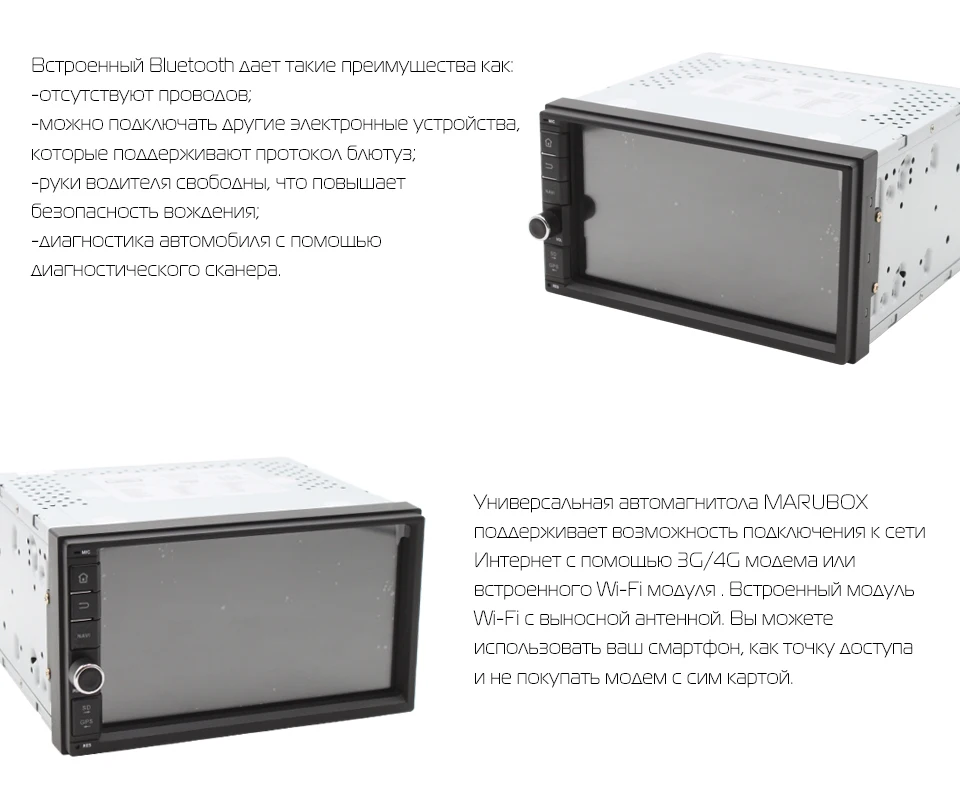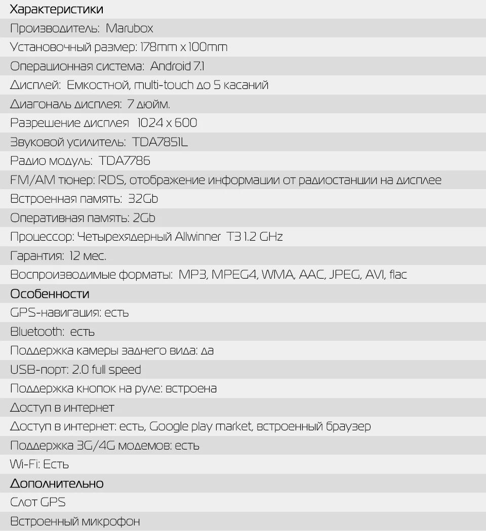 Car Multimedia Universal Player,2 DIN, Marubox 706DT3,Android 7.1, Quad Core,7'' IPS,2GB RAM,32GB ROM,GPS,Radio 6686,Bluetooth