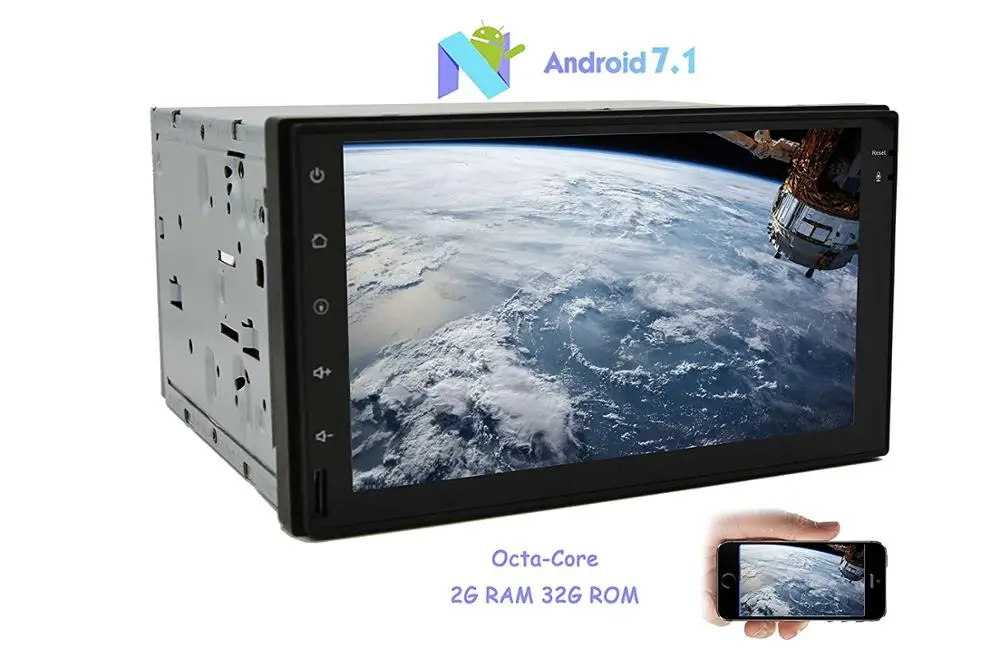 "7'' EinCar Android 7.1 Car Stereo withOcta Core32GB CPU HD Capacitive Touch Screen Car Radio GPS Navigation In Dash Bluetooth Multimedia Player Support Bluetooth/WiFi/OBD2+Backup Camera* 1,Support dual camera. This unit support rear camera input, automatically switch to rear camera when reverse the car. More importantly, we set a RCA port for the front camera. The BACKUP CAMERA is included!* 2,Android 7.1 nougat Octa-Core OSLatest Android Operating system. Capacitive Multiple Touch Screen Accuracy, Sensitivity, Anti-Frinction 2GB RAM+32GB ROM CPU to handle any requests easily & Smoothly! 32GB Flash Memory to store numerous APPs, Games!* 3,3D GPS to experience best Navigation. WiFi/3G/4G to Surf the Internet Anywhere you go. Support OBD2 Diagnostic Car Auto Interface Scanner. Tip:This product not include 3G/4G dongle and OBD2,if you need them,please feel free to contact with us.* 4,A variety of LED button colour for your choice. Built-in radio tuner (stations storage function) Supports Micro SD input. EQ mode: Nomal Jazz Pop Classical Rock News. Supports steering wheel control* 5,A Window for You to Diagnose Your Car Status (OBD2 Adapter Optional).Wireless Screen Mirroring Function, support both iphone and Android Phones. Faster Wireless With Built-In WiFiEincar 7 inch Octa-core Android 7.1 HD 1024*600 Car Stereo 2 Din in Dash GPS Navigation Radio Bluetooth Head Unit Support Phone Mirroring CAM-IN OBD2 4G/3G WIFI* 1,7 inch HD Digitalmulti-touchscreen, Octa-Core CPU with the latest Android 7.1 nougat system,2GB RAM+32GB ROM,faster running and low-consumption.* 2,Built-in GPS Navigationsoftware,support online/offline map,Dual-brand Wifi for Google Map and over 99800 free APPs,Games from the built-in Google Play Store* 3,Bluetooth hands-freecalling and music streaming via A2DP,support phonebook search,you can import all your contacts from address book; Support USB/TF storage devices, you can download your favorite songs to a storage device,it is very convenient* 4,More than 60+ OSD languageand built-in 30+ car logo for choice, Customize wallpaper supported and 7 color button display available* 5,SupportUSB, SD and HDmultimedia, FM / AM RDS radio, Steering wheel control, Wifi , 3G/4G(extra device is required),OBD2(extra device is required), Camera(extra device needed)•Smarter User Interface DesignEasy to touch UI design enables the driver to operate the unit easily and conveniently on the go.You can operate the music and radio on the home screen easily.One button acceleration helps you clear the cache and speed up the performance.More Possibilities1) Better Multi-tasking Performance2) Faster Internet Downloading & Video Decoding3) More 3D Games to Play2.CPU: Allwinner T832GB ROM + 2GB RAMMore space to download your favorite Apps and to browse websites, play games, run Apps, watch movies more smoothly.Car Standard Radio Module: Strong anti-interference ability, good radio signal receiving.Power Amplifier Chip: High-fidelity and powerful audio effects.CPU Processor: Octa-Core 64-bitSpecial features: Built-in GPS, Charger, Mobile Phone, MP3 Players,Radio Tuner, Touch Screen,Bluetooth-Enabledsupport mirror link,like you smart phone.Bluetooth you can play music and make a phone call via it.Screen: 7 inch Capacitive HD touch screenGPS: offline map card preloaded,Support Google Maps online Navigating, Support other Android Navigation app.WiFi Built-in3G/4G Network: Need extra 3G/4G USB Dongle, not included.APK Installer: Support Android Package installerVideo Decoder: 1080PMusic Format: MP3WMAAACRMFLAC etc. support all the format which Android supportVideo Format: MPEG-1/2/4H264H263VC1RVRMVBDivXSorenson SparKSparkVP8AVS Stream etc.Radio: FM/AM, RDS( European/Russia/Japan/America )FM Frenqency Range: 76.0MHz-108.0MHz;AM Frenqency Range: 522-1620KHzOBDII Function: yes.OBDII function via bluetooth need an extra bluetooth module for OBDII,it is very easy to operate.Multi OSD Languaes: English/ Russian/ French/ German/ Spanish/ Italian/ Arabic/ Portuguese/Turkish/Thai/Polish/Hebrew etc.it can support over 60 kinds of language.What is in the pacakge:,1xfree backup camera,1 XGPS Antenna,1x power ISO cable,2x install bracket,1x user manual,1x wiring Diagrams,1x warranty card,1xcertificate.Map&GpsThe Newest map ( 2017) free maps including the following area and country:Europe:Albania,Andorra,Austria,Belarus,Belgium,Bosnia,Bulgaria,Croatia,Cyprus,CzechRepublic,Denmark,Estonia,Finland,France,Germany,Gibraltar,Greece,Hungary,Iceland,Ireland,Italy,Kosovo,Latvia,Liechtenstein,Lithuania,Luxembourg,Malta,Moldova,Monaco,Netherlands,Norway,Poland,Portugal,Romania,Russia,San_Marino,Serbia,Slovakia,Slovenia,Spain,Sweden,Switzerland,Turkey,Ukraine,United Kingdom.The Newest map ( 2017) free maps including the following area and country:North America:Canada,Mexico,United StatesThe other country,we will send you the new map we have such as:South America:Argentina,Brazil,Chile,Colombia.Peru,Uruguay,VenezuelaOceanica : Australia, New Zealand.Africa:Angola,Botswana,Burundi,Egypt,Lesotho,Kenya,Malawi,Morocco,Namibia,Nigeria,Rwanda,SouthAfrica,Swaziland,Tanzania,Uganda,Zambia,ZimbabweMid-East:Bahrain,Israel,Lebanon,Oman, Qatar, Kuwait,Saudi Arabia,The United Arab Emirates, JordanMap&GpsThe Newest map ( 2017) free maps including the following area and country:Europe:Albania,Andorra,Austria,Belarus,Belgium,Bosnia,Bulgaria,Croatia,Cyprus,CzechRepublic,Denmark,Estonia,Finland,France,Germany,Gibraltar,Greece,Hungary,Iceland,Ireland,Italy,Kosovo,Latvia,Liechtenstein,Lithuania,Luxembourg,Malta,Moldova,Monaco,Netherlands,Norway,Poland,Portugal,Romania,Russia,San_Marino,Serbia,Slovakia,Slovenia,Spain,Sweden,Switzerland,Turkey,Ukraine,United Kingdom.The Newest map ( 2017) free maps including the following area and country:North America:Canada,Mexico,United StatesThe other country,we will send you the new map we have such as:South America:Argentina,Brazil,Chile,Colombia.Peru,Uruguay,VenezuelaOceanica : Australia, New Zealand.Africa:Ang